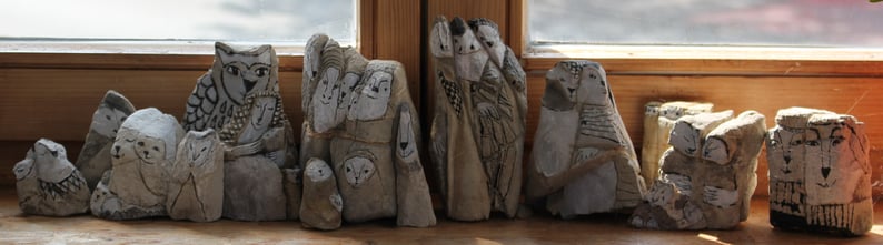 Ca. 30 Figuren auf Holzsockel, plaziert auf einer schwarzen Metallplatte - anlässlich der Tegernseer Kunstausstellung "Heimat", 2014.